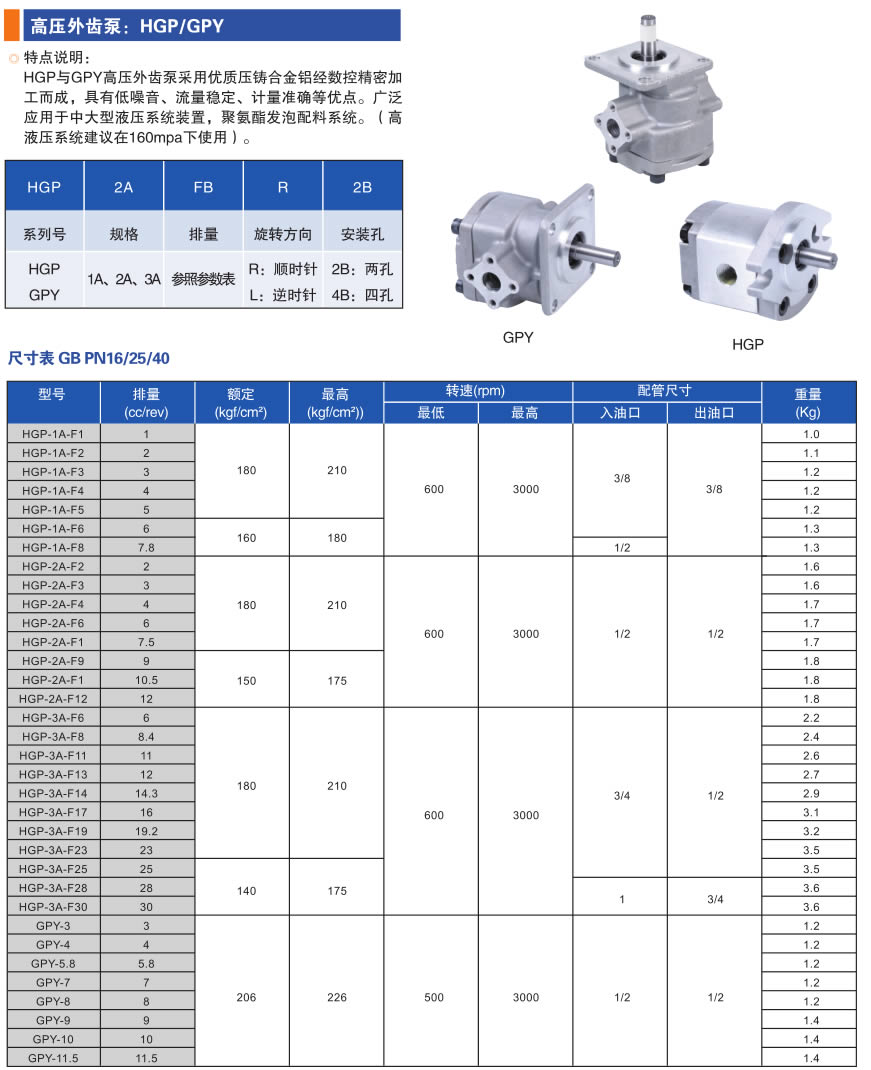 产品适用于:中大型液压系统装置、聚氨酯发泡配料系统。HGP与GPY系列采用优质压铸合金铝经数控精密加工而成,具有低噪音、流量稳定、计量好等优点。